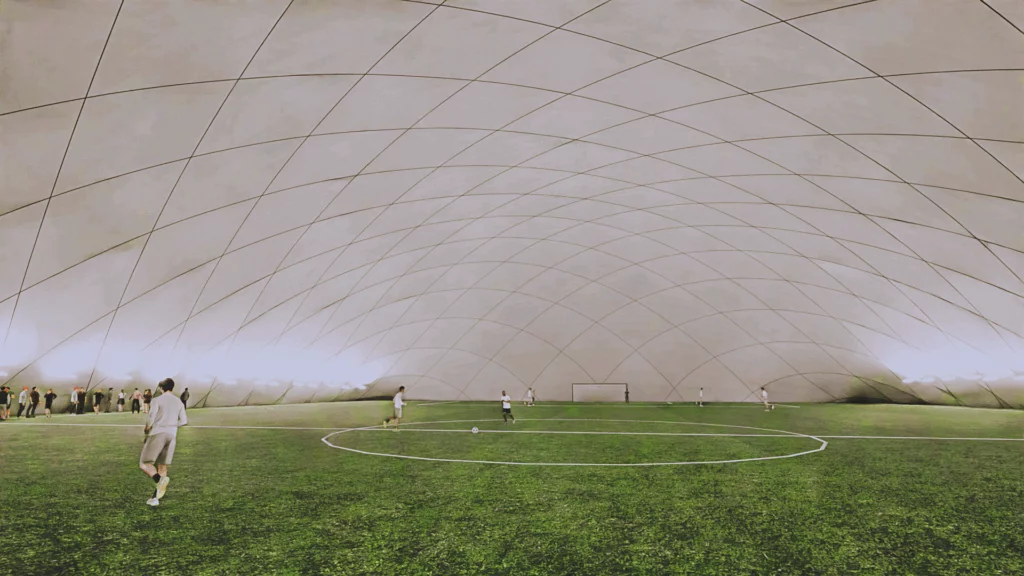 Installation of complete structures with a pneumatic system maintaining constant internal pressure and high insulation.