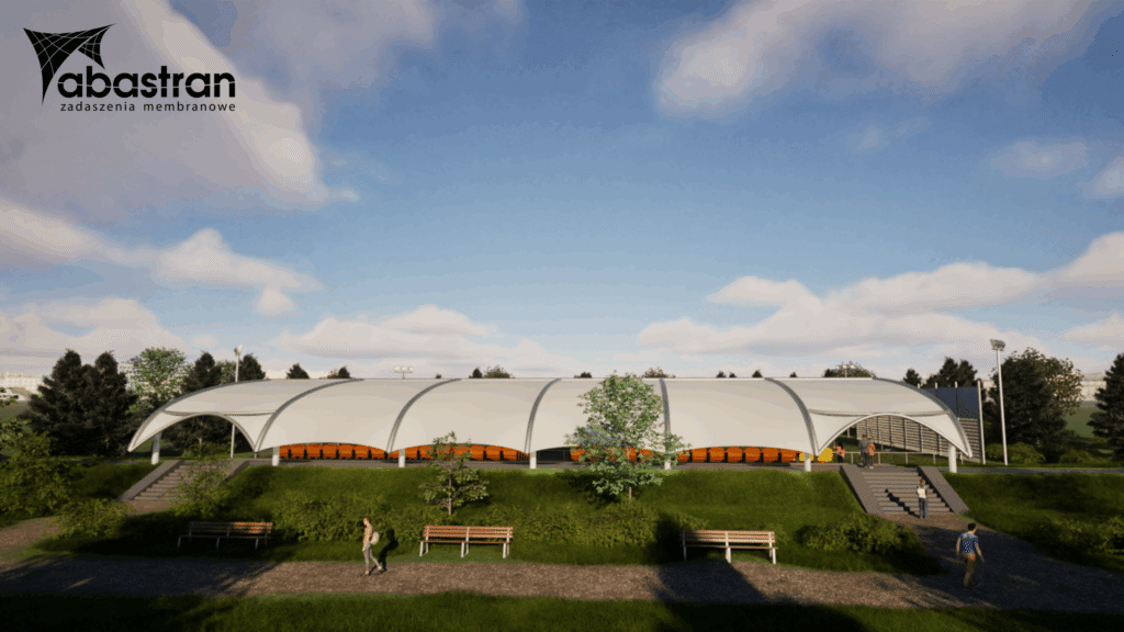 Wykonany przez Abastran projekt koncepcyjny zadaszenia w trybun stadionu charakteryzuje się smukłą, dynamiczną sylwetką, odpowiednią dla obiektu sportowego, jednocześnie harmonijnie wpisującą się w ukształtowanie terenu i otoczenie.
