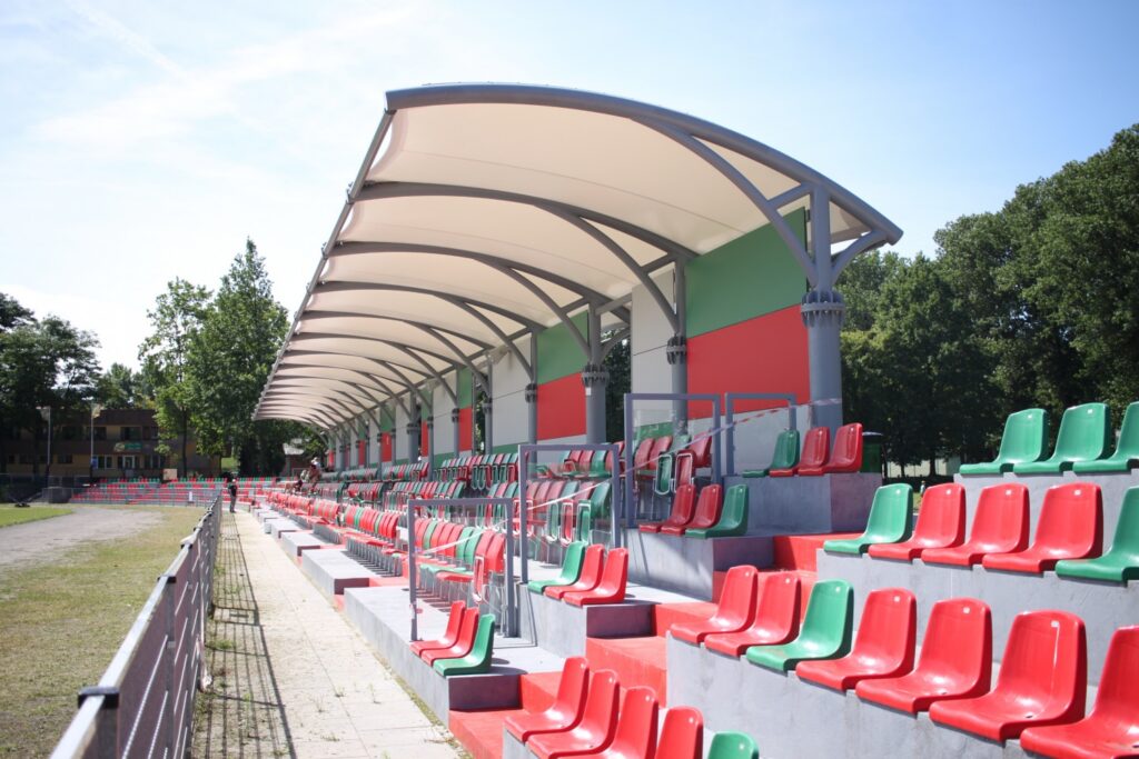 Zadaszenie membranowe trybun obiektu sportowego
