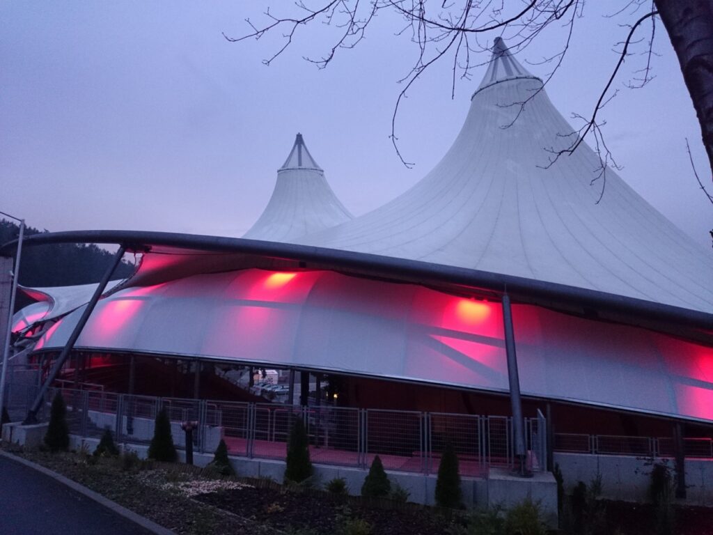 Ściana osłonowa o powierzchni 237 m² została wykonana z membrany PVC z włóknami PES, co zapewnia wysoką odporność na UV i trwałość materiału. Konstrukcja stalowa ściany zrealizowana została z profili okrągłych zamkniętych, co gwarantuje jej stabilność i trwałość. Membrana jest napięta na konstrukcji i stanowi element nośny, przy czym napinana jest za pomocą blach węzłowych i śrub napinających, co pozwala na utrzymanie jej w odpowiednim napięciu i kształcie.