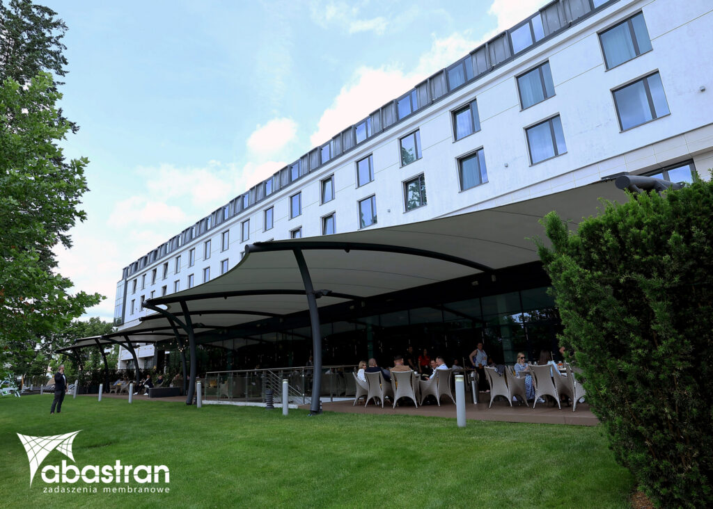 Membranowe zadaszenie tarasu Hotelu Hilton