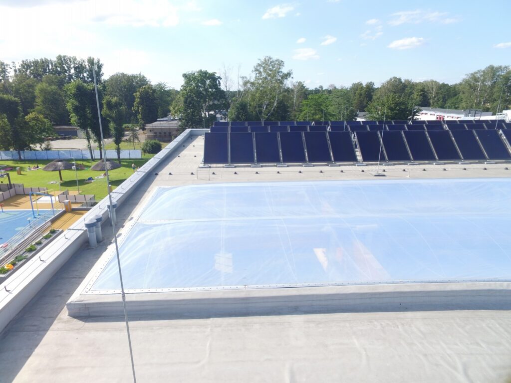 Zastosowana folia ETFE od firmy Guarniflon S.p.a. charakteryzuje się wysoką trwałością i odpornością na warunki atmosferyczne. W projekcie w Kędzierzynie-Koźlu folia została wykorzystana do stworzenia dwóch podłużnych poduszek, które są rozciągnięte na stalowej ramie dachowej budynku. Takie rozwiązanie nie tylko zwiększa estetyczny urok obiektu, ale także zapewnia doskonałe warunki świetlne wewnątrz.
