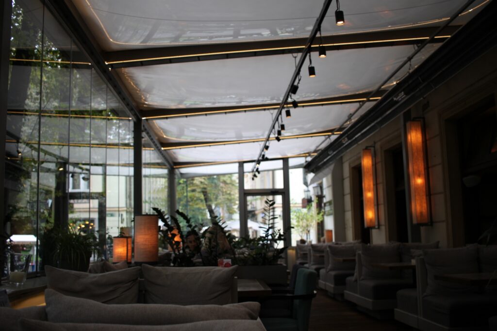 Poduszki pneumatyczne z folii ETFE – Zadaszenie tarasu restauracji w Krakowie