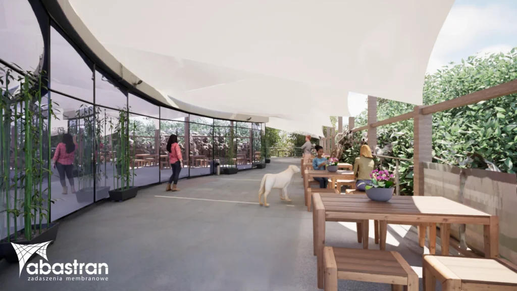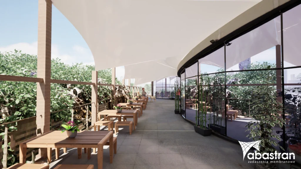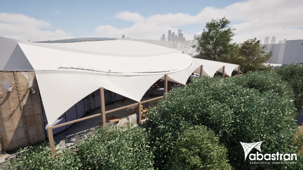 Projekt zakładał realizację zadaszenia tarasu restauracji przy Muzeum Manggha w formie napinanej membrany PVC na stalowej konstrukcji. Forma dachu, inspirowana falą, nawiązywała do japońskiej estetyki budynku i jego nadwiślańskiego otoczenia.