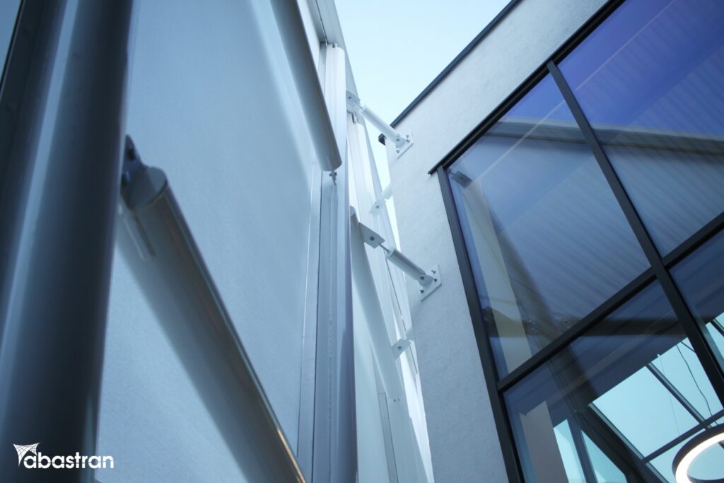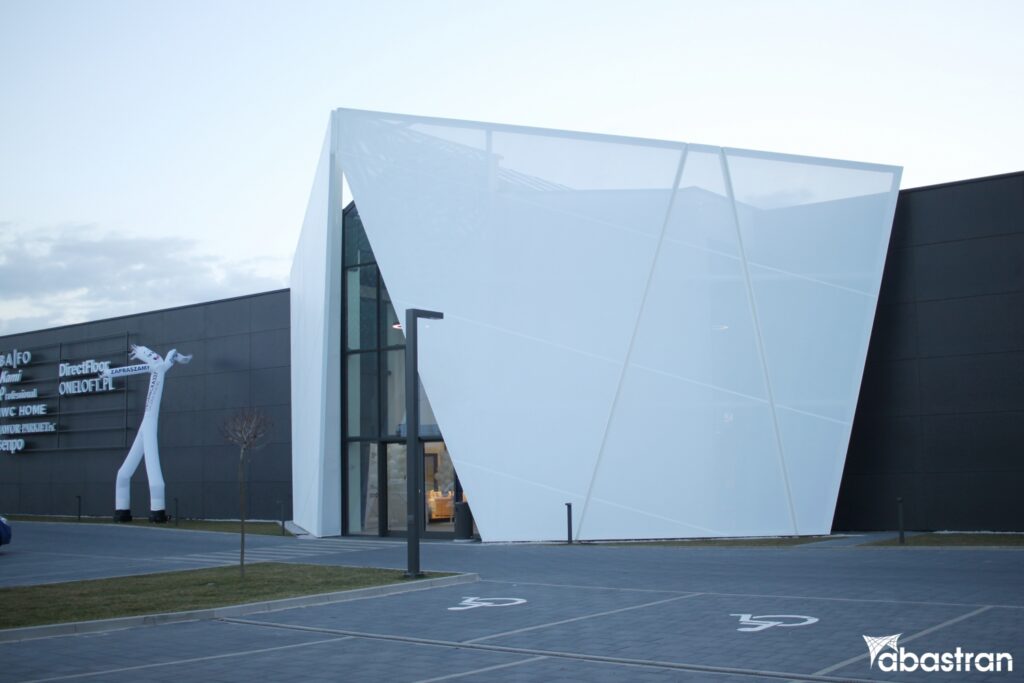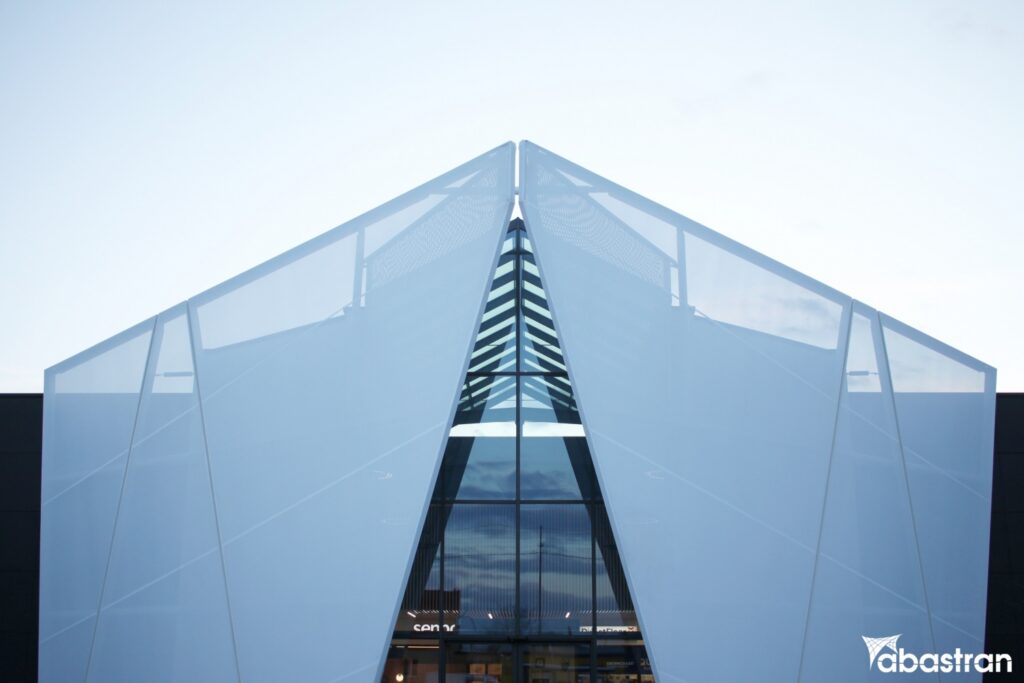 Ściana z siatki PVC pełni funkcję ochronną, zmniejszając wpływ czynników zewnętrznych takich jak wiatr czy deszcz, a także filtruje światło słoneczne, co poprawia komfort wewnątrz galerii. Estetycznie, jej nowoczesny design dodaje charakteru całemu obiektowi, modernizując jego wygląd i sprawiając, że staje się on bardziej zapraszający i reprezentacyjny. Szukasz nietypowych rozwiązań elewacyjnych? Poznaj nasze możliwości w zakresie projektowania konstrukcji membranowych.