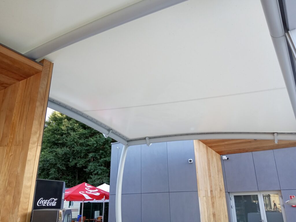 Potrzebujesz zadaszenia? Sprawdź naszą ofertę zadaszeń membranowych, idealnych dla tarasów, scen i estrad.