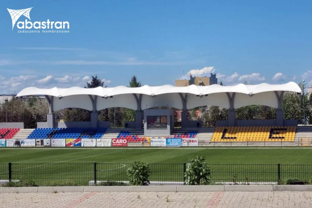 Zadaszenie o łącznej powierzchni 360 m² zapewnia skuteczną ochronę przed czynnikami atmosferycznymi, podnosząc komfort uczestników wydarzeń sportowych. Starannie zaprojektowany układ konstrukcyjny gwarantuje trwałość, bezpieczeństwo i estetykę na najwyższym poziomie. Szukasz lekkiego i nowoczesnego zadaszenia trybun? Sprawdź nasze konstrukcje membranowe.
