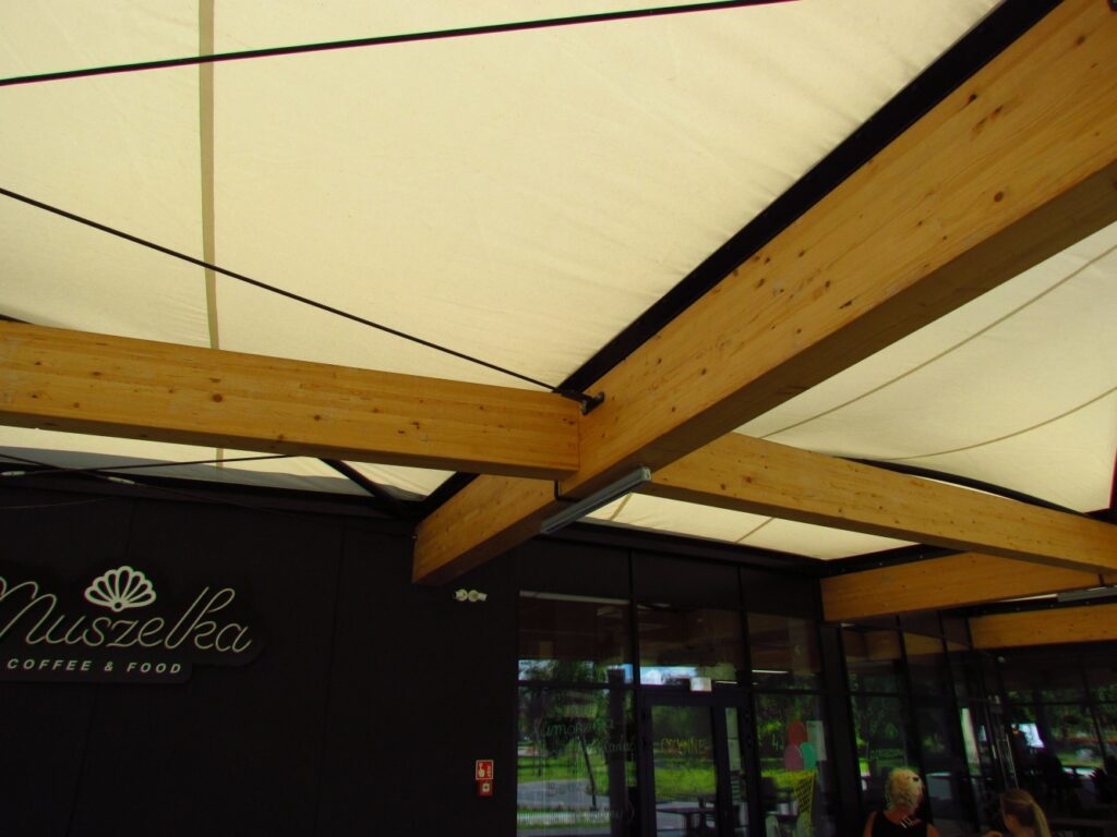 Niezbędne obliczenia statyczne poszycia pozwoliły upewnić się, że membranowe zadaszenie będzie w pełni bezpieczne i spełni wszystkie wymogi techniczne. Końcowy etap projektu zakładał dostawę i montaż poszycia membranowego wraz z wszystkimi elementami mocującymi, takimi jak listwy aluminiowe czy łączniki do membrany. Całość prac wykonano z dbałością o każdy szczegół, co gwarantuje nie tylko wytrzymałość, ale i estetyczne wykonanie zadaszenia.